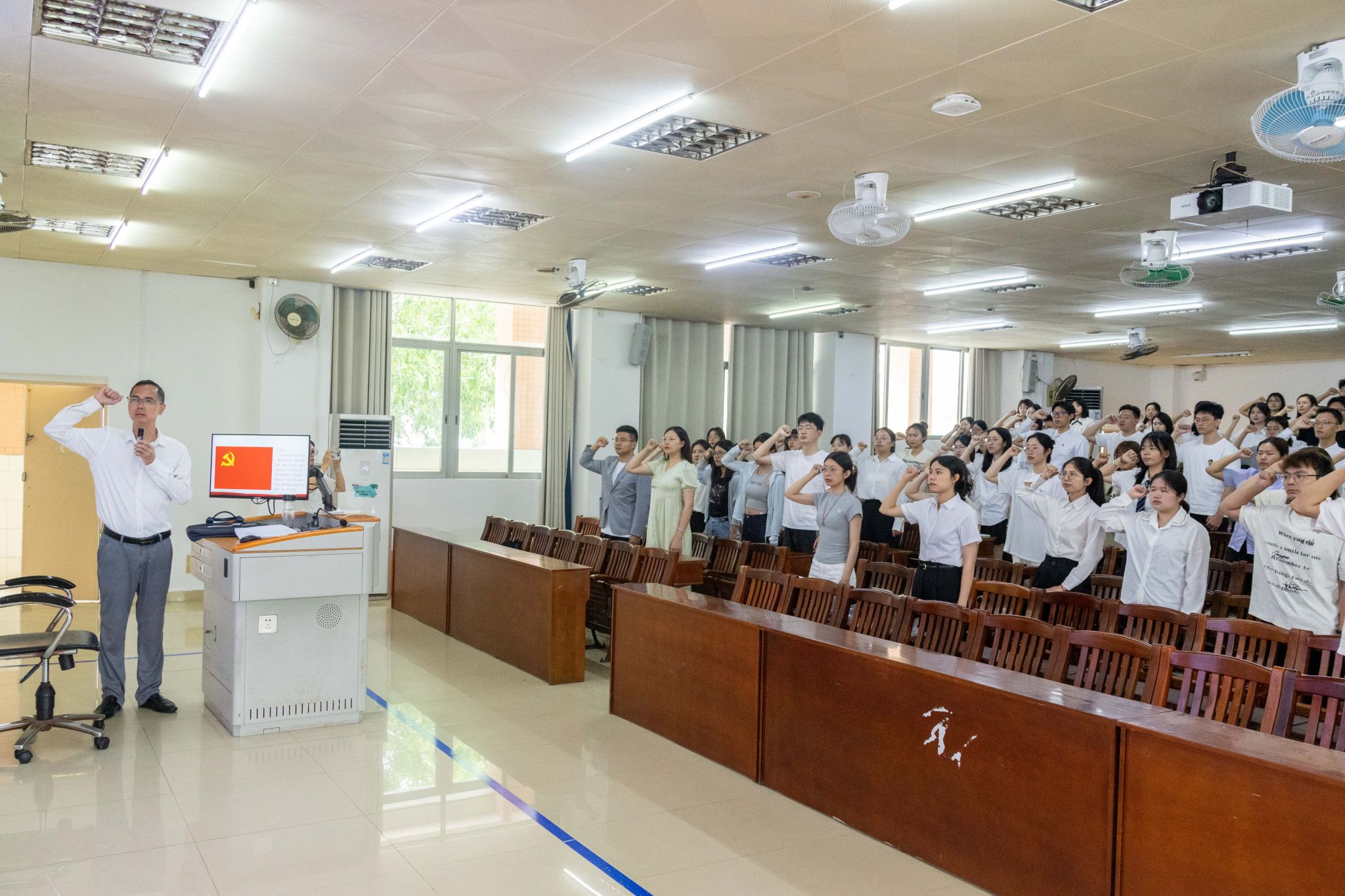 党课在重温入党誓词中结束,全体党员庄严宣誓,以铿锵誓言许下对党的忠诚承诺。