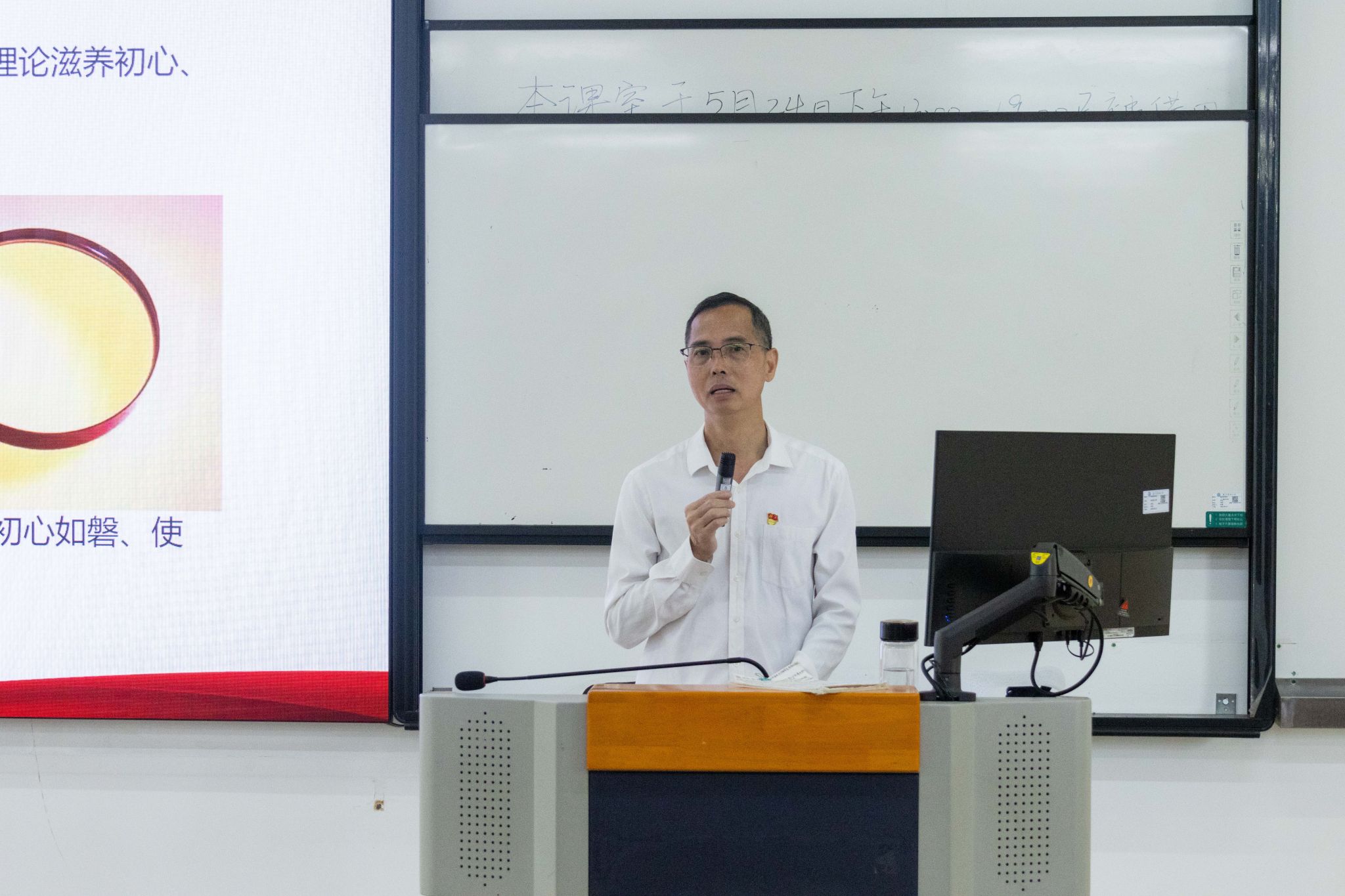 谭秋浩首先通过“小男孩想当医生”等生动故事,引导同学们思考坚守初心的重要性。他结合中央八项规定及其实施细则精神的学习,谈到中国共产党人的初心和使命,讲解了从“两个务必”到“三个务必”蕴含的内涵和精神实质,要求同学们认真把握其科学内涵和实践要义,自觉加强党性修养,树牢宗旨意识,坚持用党的创新理论滋养初心、引领使命,坚持从小事做起、细节入手,严守纪律规矩,永葆党员本色。